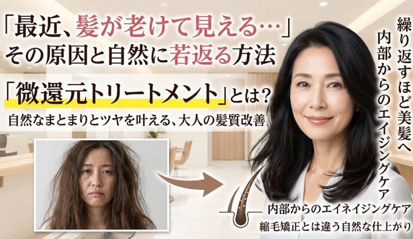 詳しくは▶[微還元トリートメントとは?(仕組み・施術の流れ・おすすめの髪質を詳しく解説)]